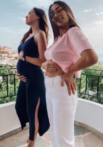 Δίπλα στην Όλγα βρίσκεται φυσικά και ηα δελφή της Γωγώ που τη βοηθάει σε ό,τι χρειαστεί. Οι δύο τους πόζαραν στη βεράντα του σπιτιού και η Όλγα μας δείχνει περήφανη τη φουσκωμένη κοιλίτσα της.