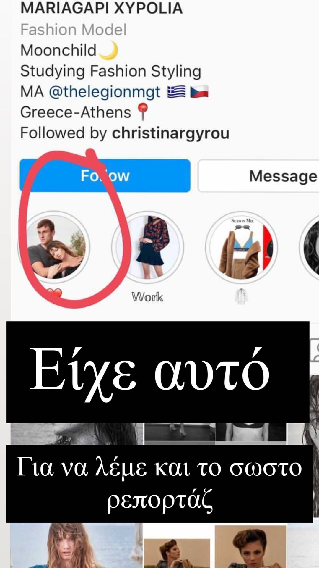 Οι δυο παίκτες φαίνεται πως αποτελούν ένα από τα ζευγάρια του Greece’s Next Top Model, κάτι που επιβεβαίωσε και η Βίκυ Καγιά, σε πρόσφατη συνέντευξή της. Η Soula Glamorous έρχεται σήμερα με μια μεγάλη αποκάλυψη… Η Μαριαγάπη φαίνεται πως χώρισε και επίσημα τον σύντροφό της, μιας και όπως θα δεις στα στιγμιότυπα που ανάρτησε η διαδικτυακή περσόνα, έχει σβήσει τα Highlights που είχε με τον άλλοτε αγαπημένο της στον προσωπικό της λογαριασμό στο Instagram.