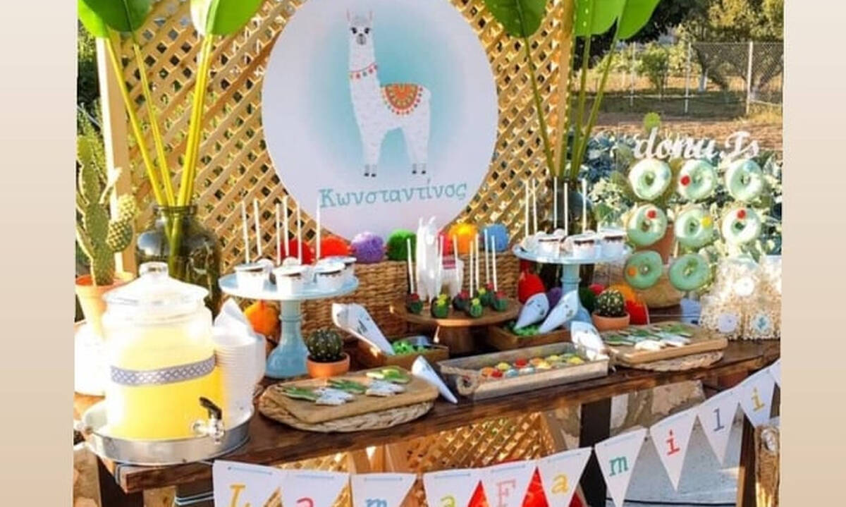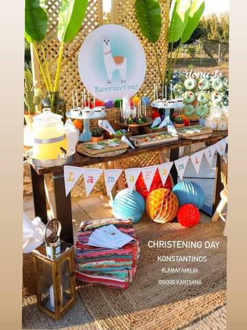 Το θέμα της βάφτισης ήταν το «λάμα» και στη διακόσμηση επικρατούσαν τα πολλά και ζωηρά χρώματα. Ο μπουφές είχε κάθε λογής λιχουδιές, από ντόνατς και cupcakes μέχρι σπιτική λεμονάδα, cake pops και μπισκότα με ζαχαρόπαστα.