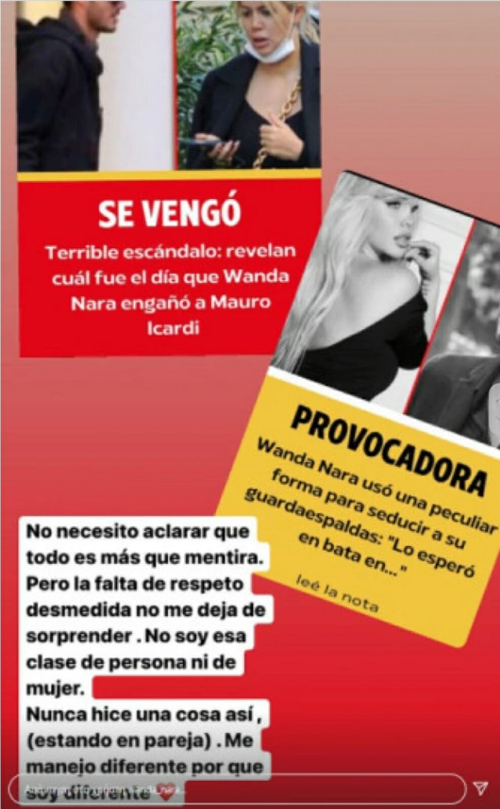 Έγραψε χαρακτηριστικά: «Μιλάνε για εκδίκηση, για φοβερό σκάνδαλο, λένε πως απάτησα τον Μάουρο, πως αποπλάνησα τον σωματοφύλακά μου, πως τον περίμενα με τη ρόμπα μου… Δεν χρειάζεται να πω ότι όλα είναι κάτι παραπάνω από ψέματα. Η υπερβολική έλλειψη σεβασμού ποτέ δεν σταματά να με εκπλήσσει. Δεν είμαι τέτοιος άνθρωπος, δεν είμαι τέτοια γυναίκα. Δεν έκανα ποτέ κάτι τέτοιο. Λειτουργώ διαφορετικά, γιατί είμαι διαφορετική».