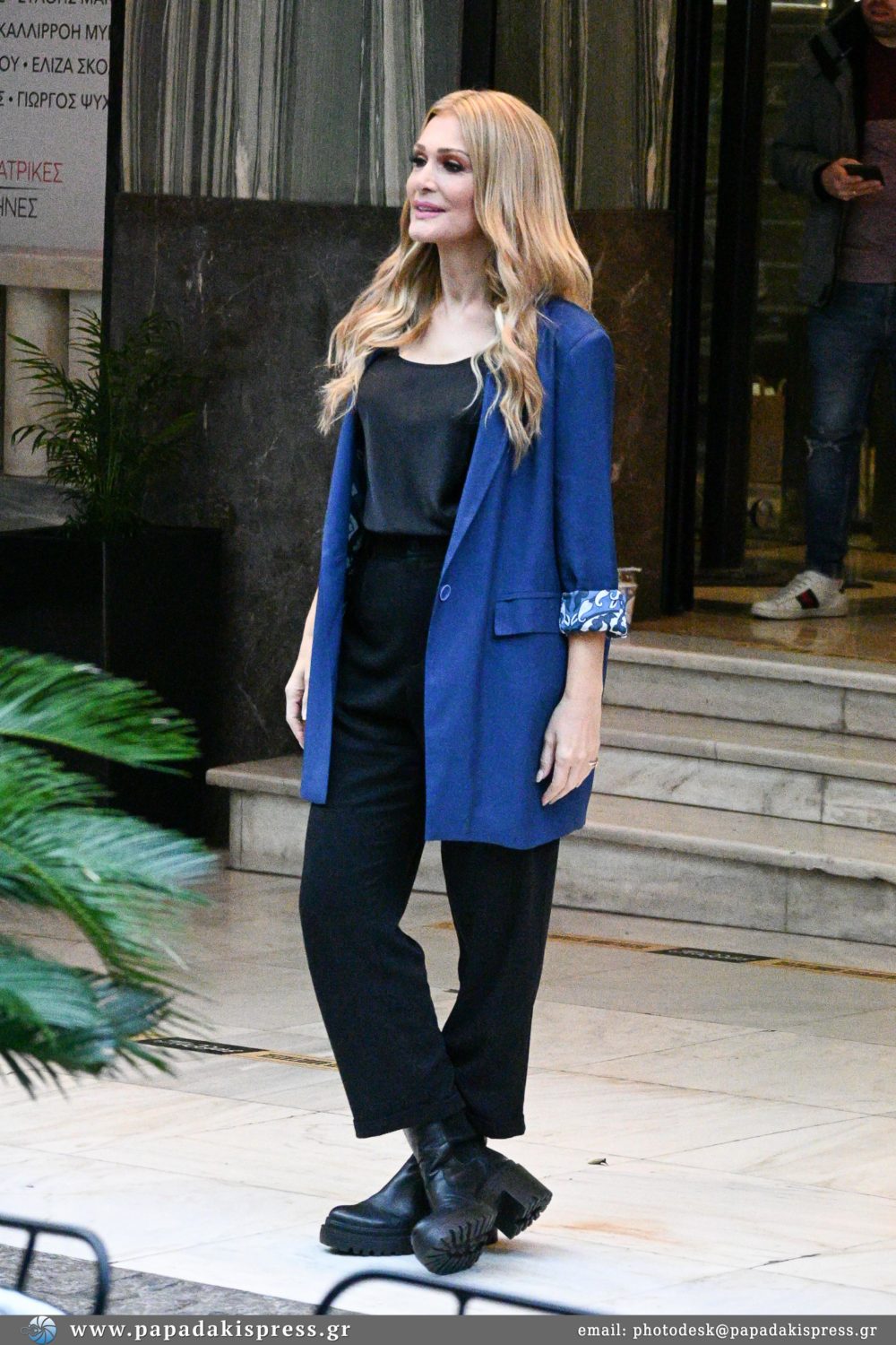 Ντυμένη με ένα total black look συνοδευόμενο από ένα εντυπωσιακό μπλε oversized blazer η Νατάσα Θεοδωρίδου μαγνήτισε τα βλέμματα.