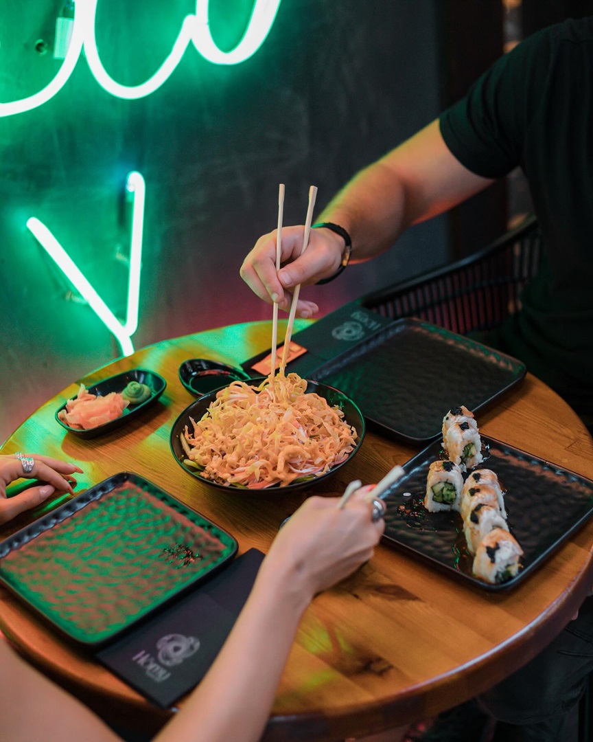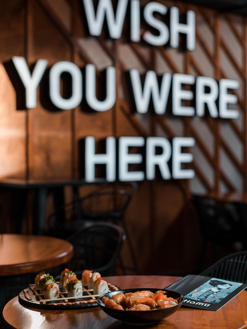 Από κλασικά sashimi & nigiri, μέχρι ευφάνταστα signature rolls, bao buns και ramen, κάθε πιάτο στο Hōmu είναι μια έκρηξη αυθεντικής γεύσης και φρεσκάδας. Οι vegan επιλογές, τα δροσιστικά cocktails και η ιδιαίτερη παρουσίαση συμπληρώνουν την εμπειρία.