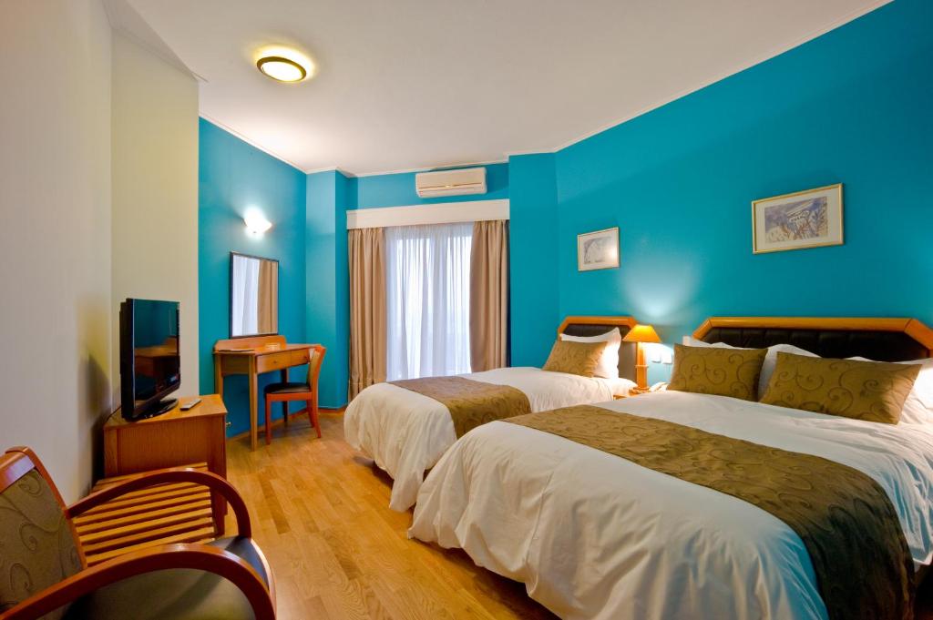 Χτισμένο σε οικόπεδο 8500 τ.μ. καλύπτει 3000 τ.μ. και προσφέρει όλες τις ανέσεις για αξέχαστη διαμονή. Διαθέτει 24 δίκλινα δωμάτια, 8 τρίκλινα και 2 πολυτελείς σουίτες, τα οποία είναι κλιματιζόμενα, διαθέτουν πρόσβαση στο internet με Wi-Fi και δορυφορική τηλεόραση. Η διακόσμηση τους χαρακτηρίζεται από εξαιρετικής ποιότητας έπιπλα τα οποία δένουν αρμονικά και ολοκληρώνουν την ευχάριστη αίσθηση που νοιώθει ο επισκέπτης σε συνδυασμό με την πανοραμική θέα από το μπαλκόνι, σε κάθε σημείο του ορίζοντα.