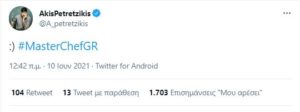 Ο Άκης Πετρετζίκης έχει δείξει ότι παρακολουθεί τα τελευταία χρόνια εντατικά το MasterChef.