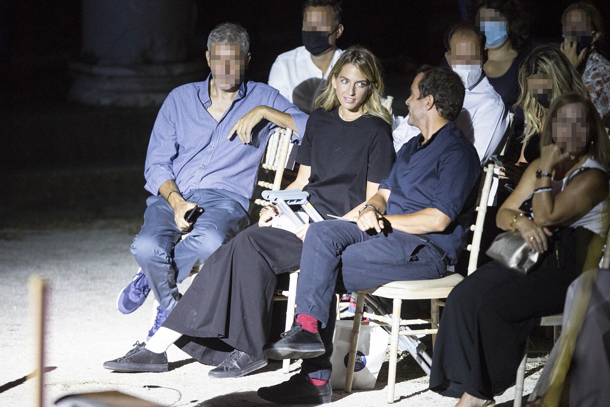 Αυτή η εποχή μας επιτρέπει να φοράμε τα αγαπημένα μας καλοκαιρινά κομμάτια, προσαρμόζοντάς τα στο φθινοπωρινό σκηνικό, ειδικά όταν πέφτει ο ήλιος. Αυτό έκανε και η Χρυσή Βαρδινογιάννη, η οποία προτίμησε ένα floral jacket για την εμφάνισή της στον ανοικτό αρχαιολογικό χώρο της Ρωμαϊκής Αγοράς στην Πλάκα για ν απολαύσει την συναυλία του Μίνου Μάτσα.  Το κατά τ’ άλλα πάρα πολύ απλό total black outfit της σε χαλαρές γραμμές αναβαθμίστηκε αμέσως με το πολύχρωμο πανωφόρι που σέταρε με τη μάσκα προστασίας για τον κορωνοϊό. Στο πλευρό της, απαθανατίστηκε και ο σύντροφός της, Κωνσταντίνος Μαρκουλάκης.