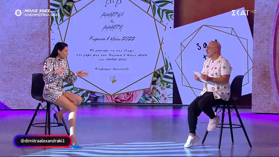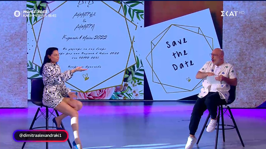 Η Δήμητρα Αλεξανδράκη εισέβαλε στο πλατό του Νίκου Μουτσινά δείχνοντας για πρώτη φορά το προσκλητήριο του γάμου της.