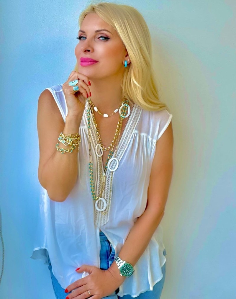 Και αυτή τη φορά θέλησε να ποζάρει με τα νέα της κοσμήματα στο γραφείο της στο Mega.