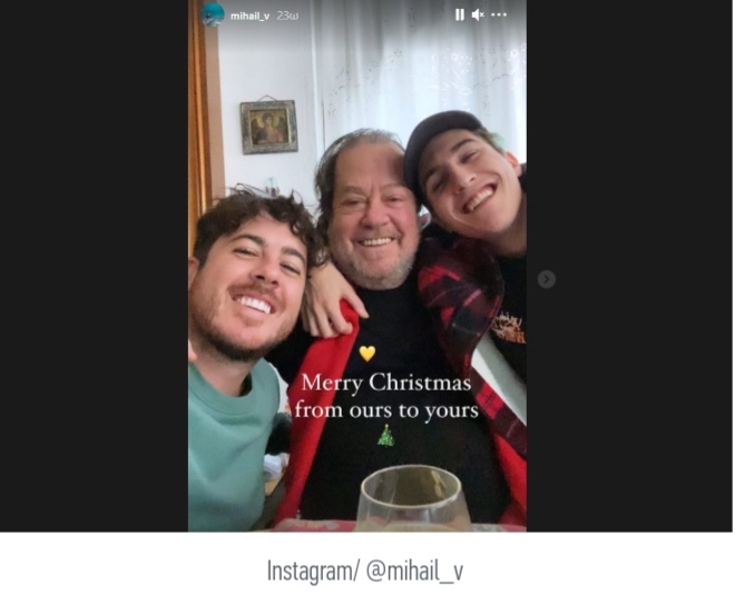 Σε ένα στόρι που ανέβασε ο Μιχαήλ Άγγελος στον προσωπικό λογαριασμό του στο Instagram, είδαμε τον Γιάννη Πάριο με τα αγόρια του. Οι τρεις τους χαμογελούν, απολαμβάνουν τις πολύτιμες οικογενειακές στιγμές τους και δίνουν τις ευχές τους σε όλον τον κόσμο.