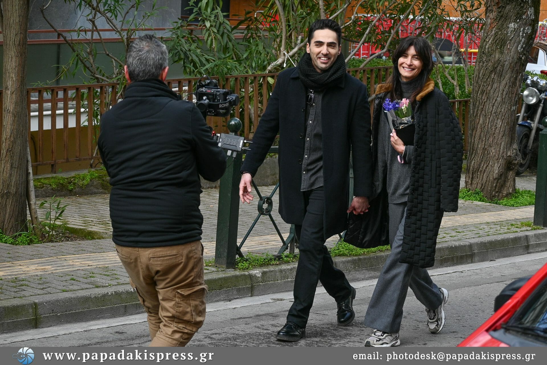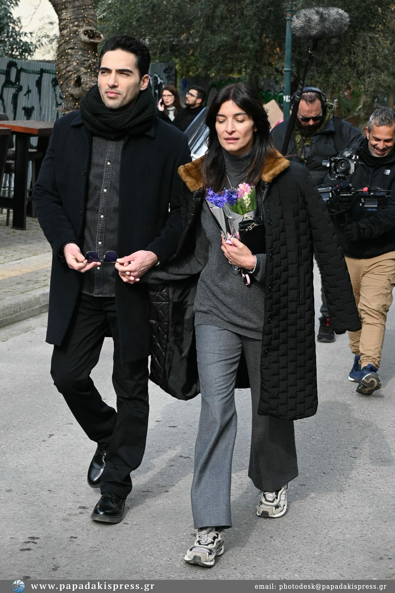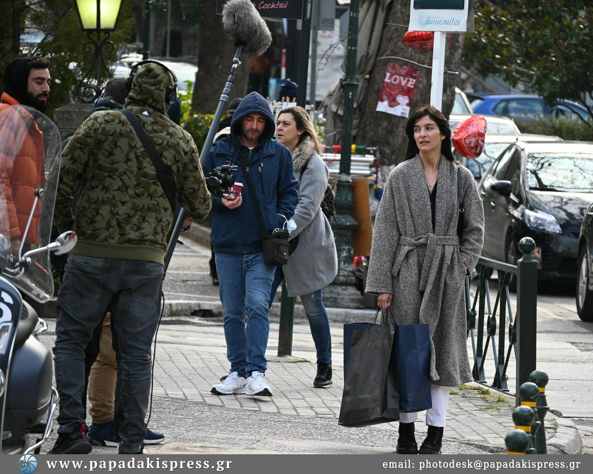 Ο φωτογραφικός φακός βρέθηκε στα γυρίσματα της σειράς, η «Γη της Ελιάς» στην Κηφισιά. Και απαθανάτισε τη βόλτα της Ιουλίας και του Κουράκου.