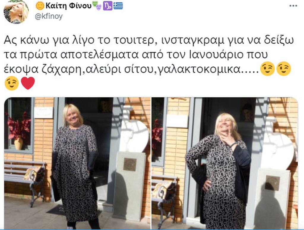 Η Καίτη Φίνου όπως αποκάλυψε μέσα από τον προσωπικό της λογαριασμό στο twitter ακολουθεί συγκεκριμένη διατροφή από τον περασμένο Ιανουάριο.