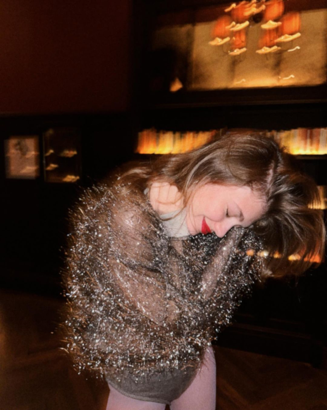 Συγκεκριμένα, φόρεσε ένα γκρι sparkly κορμάκι με ημιδιάφανο πάνω μέρος, που θυμίζει πουλόβερ, ενώ το πλεκτό κάτω μέρος του αγκαλιάζει το σώμα κρατώντας το ζεστό.