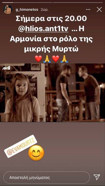 Ευτυχισμένος πατέρα είναι ο Γιώργος Χειμωνέτος και δεν το κρύβει. Με την σύζυγο του Εύα Μουρτζάκη,  έχουν αποκτήσει δύο παιδιά που ολοκλήρωσαν την οικογενειακή τους ευτυχία και αυτό φαίνεται και μέσα από τα social media. Ο Γιώργος Χειμωνέτος μας ανακοίνωσε τα ευχάριστα νέα για την τηλεοπτική εμφάνιση της κόρης τους. Η Αρμονία είναι μόλις πέντε ετών και έχει κάνει ήδη την πρώτη της τηλεοπτική εμφάνιση. Η κόρη του Γιώργου Χειμωνέτου και της Εύας Μουρτζάκη μπήκε στην καθημερινή σειρά Ήλιος του ANT1 κάνοντας φυσικά ένα κορίτσια της ηλικίας της, τη Μυρτώ, όπου είναι και το όνομα του ρόλου της.