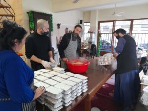 Σε μία αληθινή πράξη αγάπης ετοίμασαν 150 μερίδες φαγητού και τις πρόσφεραν σε όσους είχαν ανάγκη αυτή την αγια ημέρα ενα ζεστό πιάτο φαγητό.