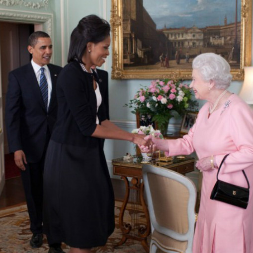 Η βασίλισσα είπε τότε στη Μισέλ Ομπάμα: «Είσαι τόσο ψηλή». Η πρώην πρώτη κυρία των ΗΠΑ απάντησε ότι οι γόβες Jimmy Choo της πρόσθεσαν μερικές επιπλέον ίντσες. Τότε, η Αυτού Μεγαλειότητα «έδειξε με κάποια απογοήτευση τις μαύρες γόβες της» και είπε: «Αυτά τα παπούτσια είναι δυσάρεστα, έτσι δεν είναι;».