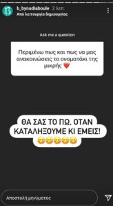 Ένας από τους followers της έγραψε “περιμένω πώς και πώς να μας ανακοινώσεις το ονοματάκι της μικρής”