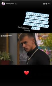 Δεν έχασε ευκαιρία ο πρώην παίκτης του Big Brother ύστερα από την αποχώρηση του να κάνει ανάρτηση στον προσωπικό του λογαριασμό στο instagram και να ευχαριστήσω όλους εκείνους που τον στήριξαν τους τελευταίους μήνες μέσα στο reality.