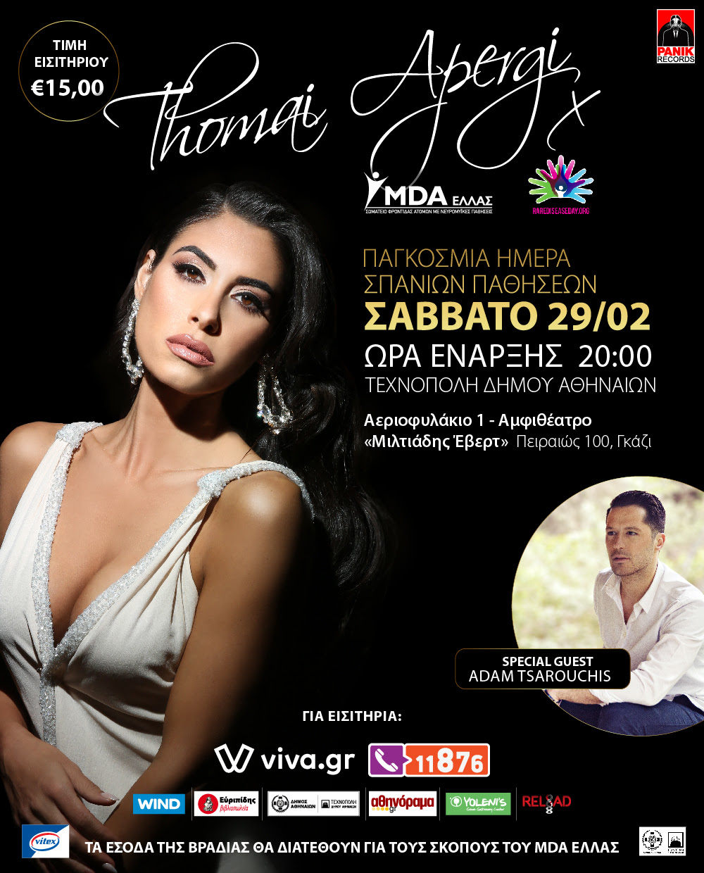 Με αφορμή την Παγκόσμια Ημέρα Σπανίων Παθήσεων, στις 29 Φεβρουαρίου 2020 και με πρωτοβουλία της Thomai Apergi Entertainment σε συνεργασία με την Panik Records, διοργανώνεται μία μουσική βραδιά με τη Θωμαή Απέργη και την μπάντα της αφιερωμένη στο MDA ΕΛΛΑΣ – Σωματείο για τη Φροντίδα των Ατόμων με Νευρομϋικές Παθήσεις.
