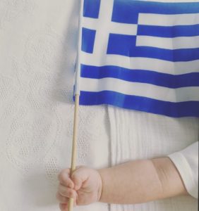 Έχοντας στο μικροσκοπικό χεράκι του την σημαία της Ελλάδας η Τζένη Μπαλατσινού έγραψε: «ΖΗΤΩ Η ΕΛΛΑΣ!».
