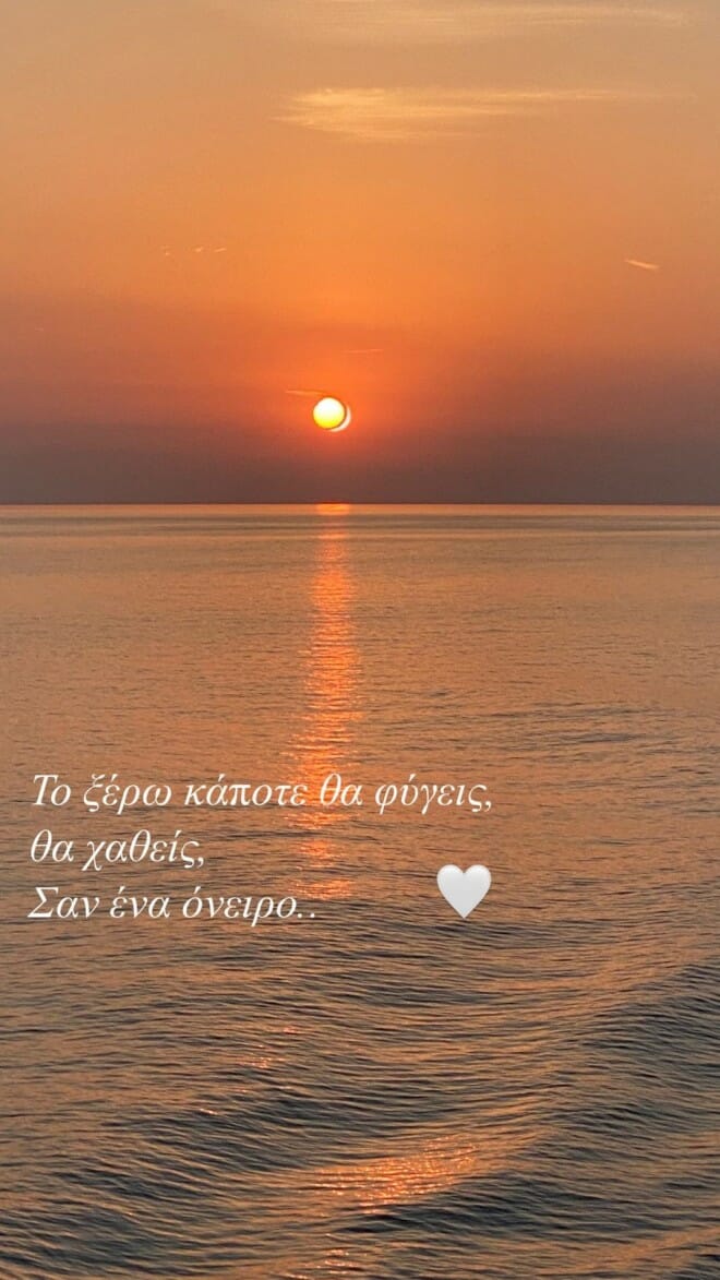 Συγκεκριμένα η πολυτάλαντη Ιλένια Ουίλιαμς ανήρτησε μία φωτογραφία από ένα όμορφο ηλιοβασίλεμα και έγραψε «Το ξέρω κάποτε θα φύγεις, θα χαθείς, Σαν ένα όνειρο».