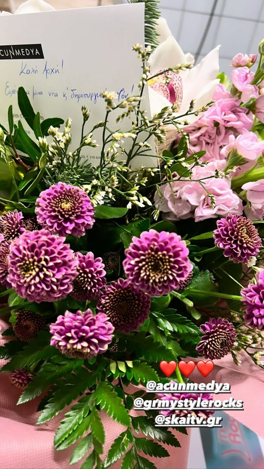 Μια εντυπωσιακή ανθοδέσμη που την καλωσόριζε ήταν το δώρο που δέχτηκε από τον Ατζούν Ιλιτζαλί και την εταιρεία παραγωγής «Acun Medya», το οποίο εκείνη μοιράστηκε με τους διαδικτυακούς της φίλους στον προσωπικό της λογαριασμό στο Instagram.