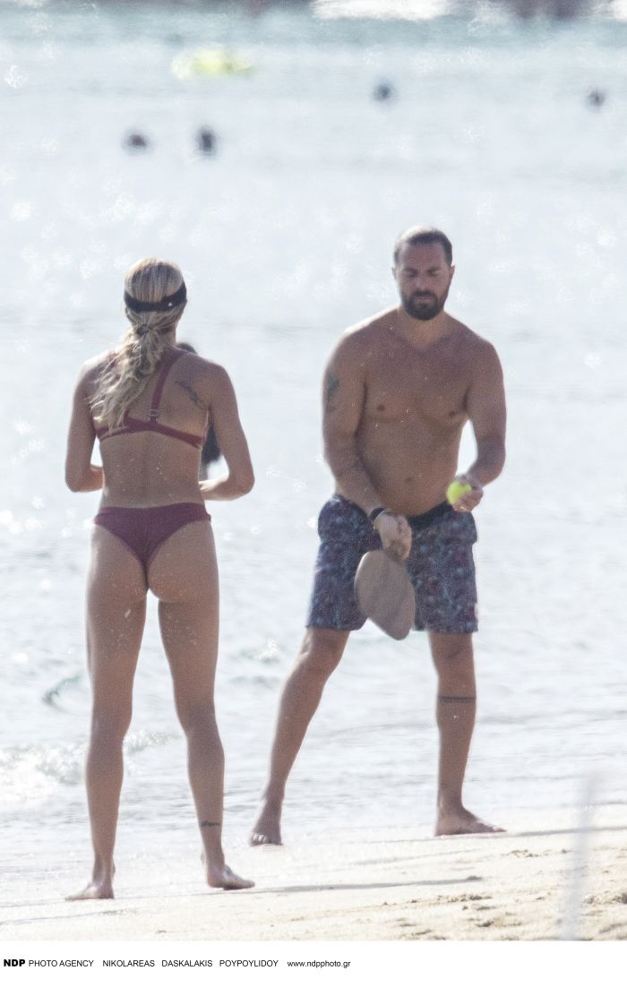 Ο φωτογραφικός φακός απαθανάτισε το γνωστό τραγουδιστή με την αγαπημένη του σε μία από τις πολυσύχναστες παραλίες του νησιού.