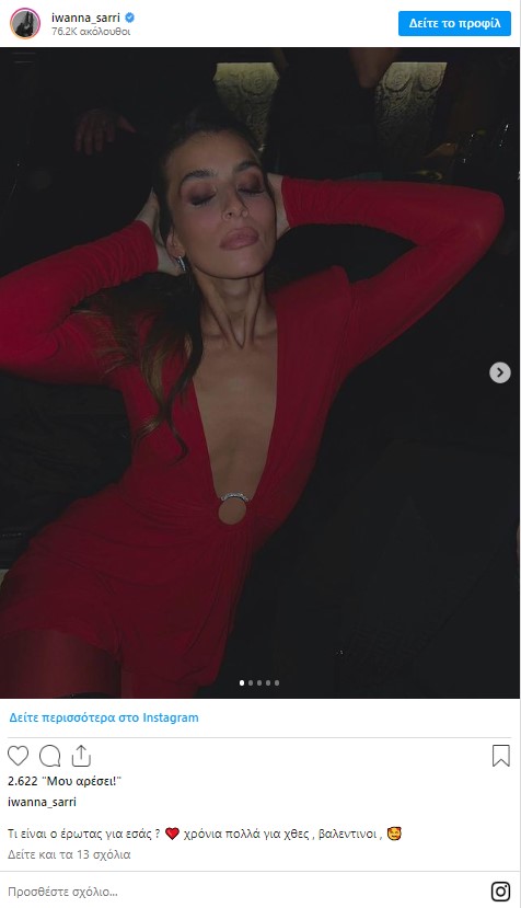 Η Ιωάννα Σαρρή με αφορμή την ημέρα του Αγίου Βαλεντίνου δημοσίευσε στον προσωπικό της λογαριασμό στο Instagram μερικές φωτογραφίες και μας έδειξε πώς πέρασε με τον αγαπημένο της, Γιώργο Σαμπάνη.