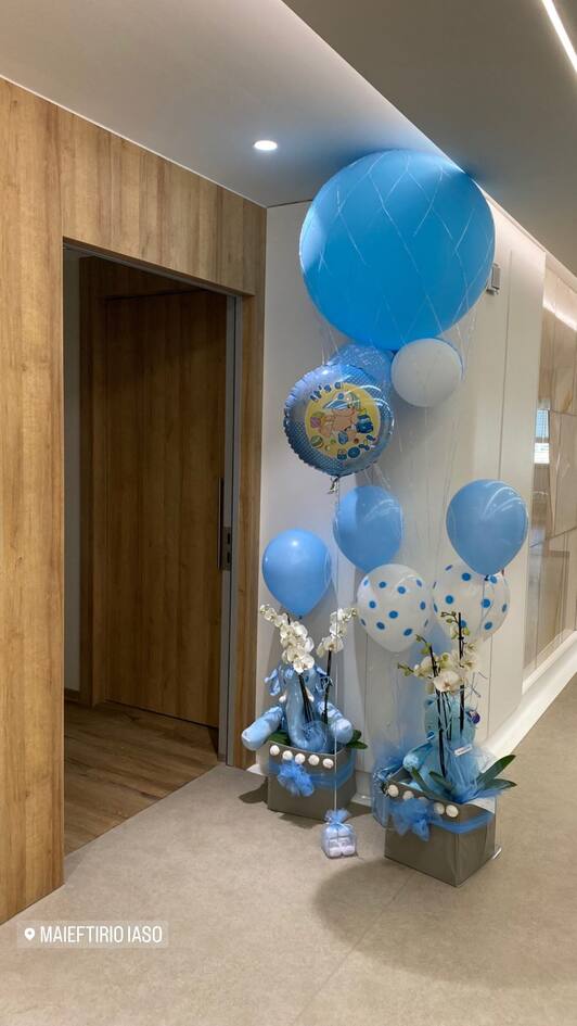 Μετά τη γέννηση του γιου της, την επισκέφτηκαν στο μαιευτήριού οι δικοί της άνθρωποι, ενώ το δωμάτιό της γέμισε με λουλούδια και γαλάζια μπαλόνια!
