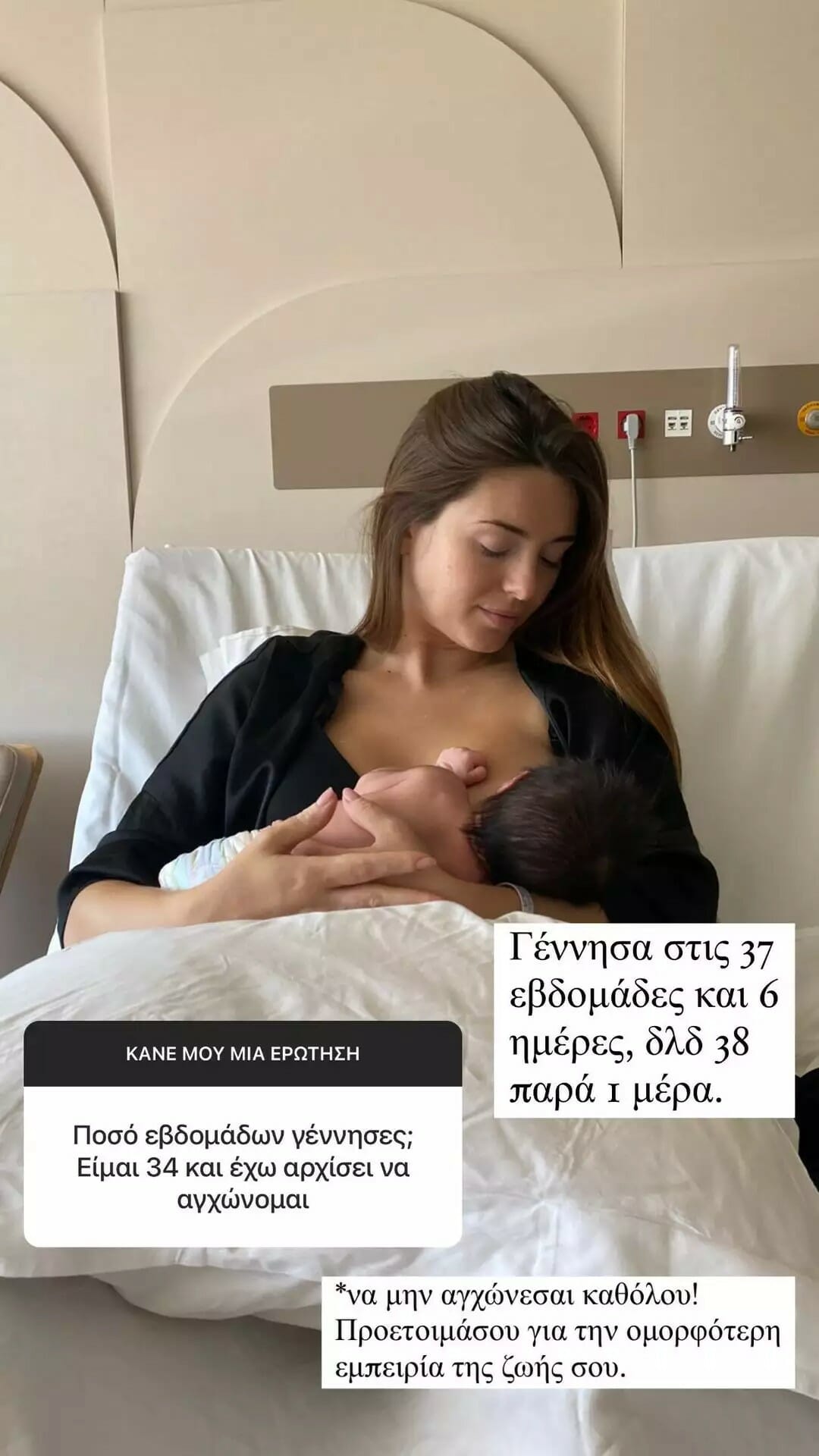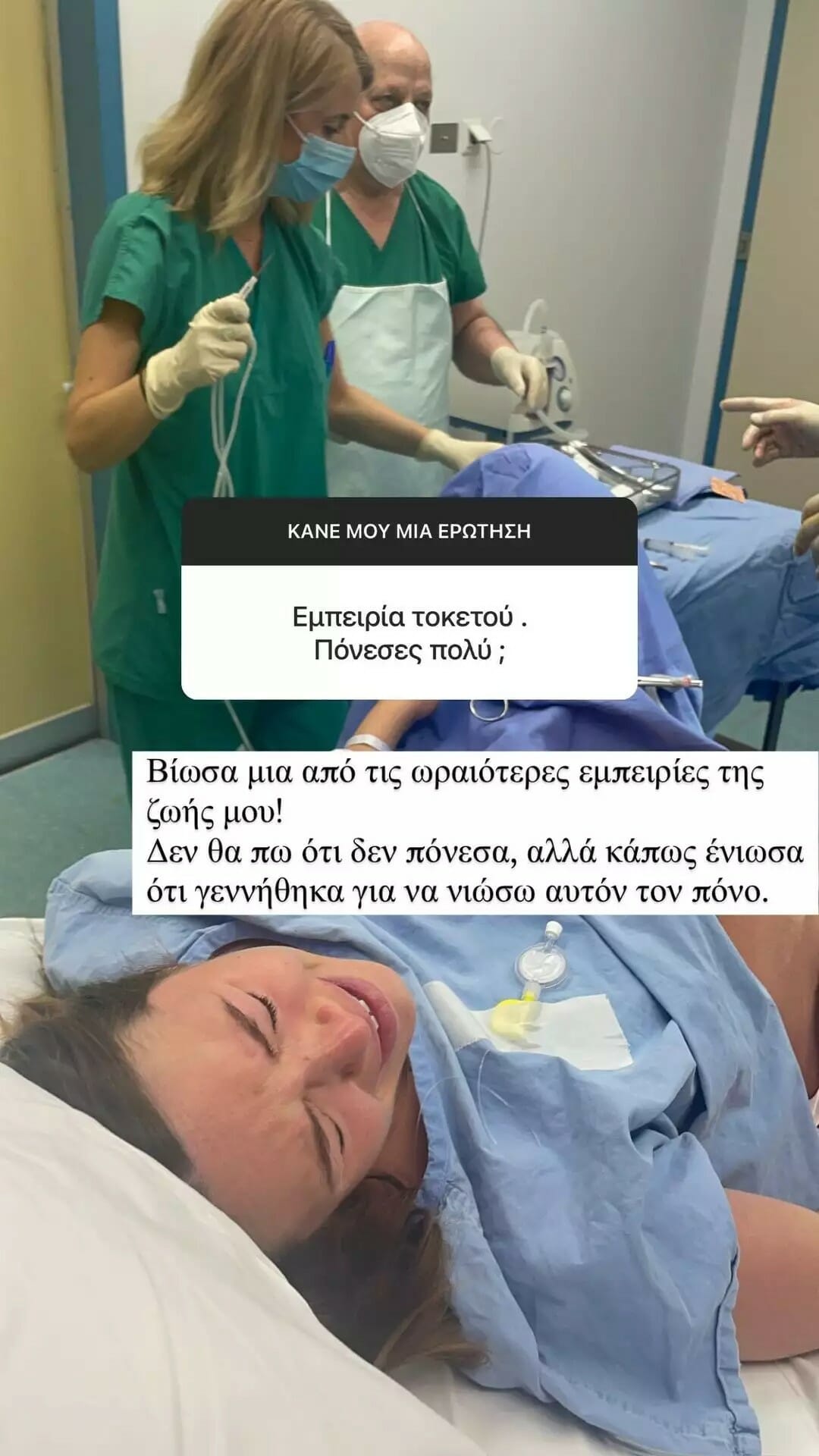 «Βίωσα μια από τις ομορφότερες εμπειρίες της ζωής μου. Δε θα πω ότι δεν πόνεσα αλλά θα πω ότι κάπως ένιωσα ότι γεννήθηκα για να νιώσω αυτόν τον πόνο» ανέφερε σε ένα από τα story της η Ιωάννα Σιαμπάνη για την εμπειρία του τοκετού.