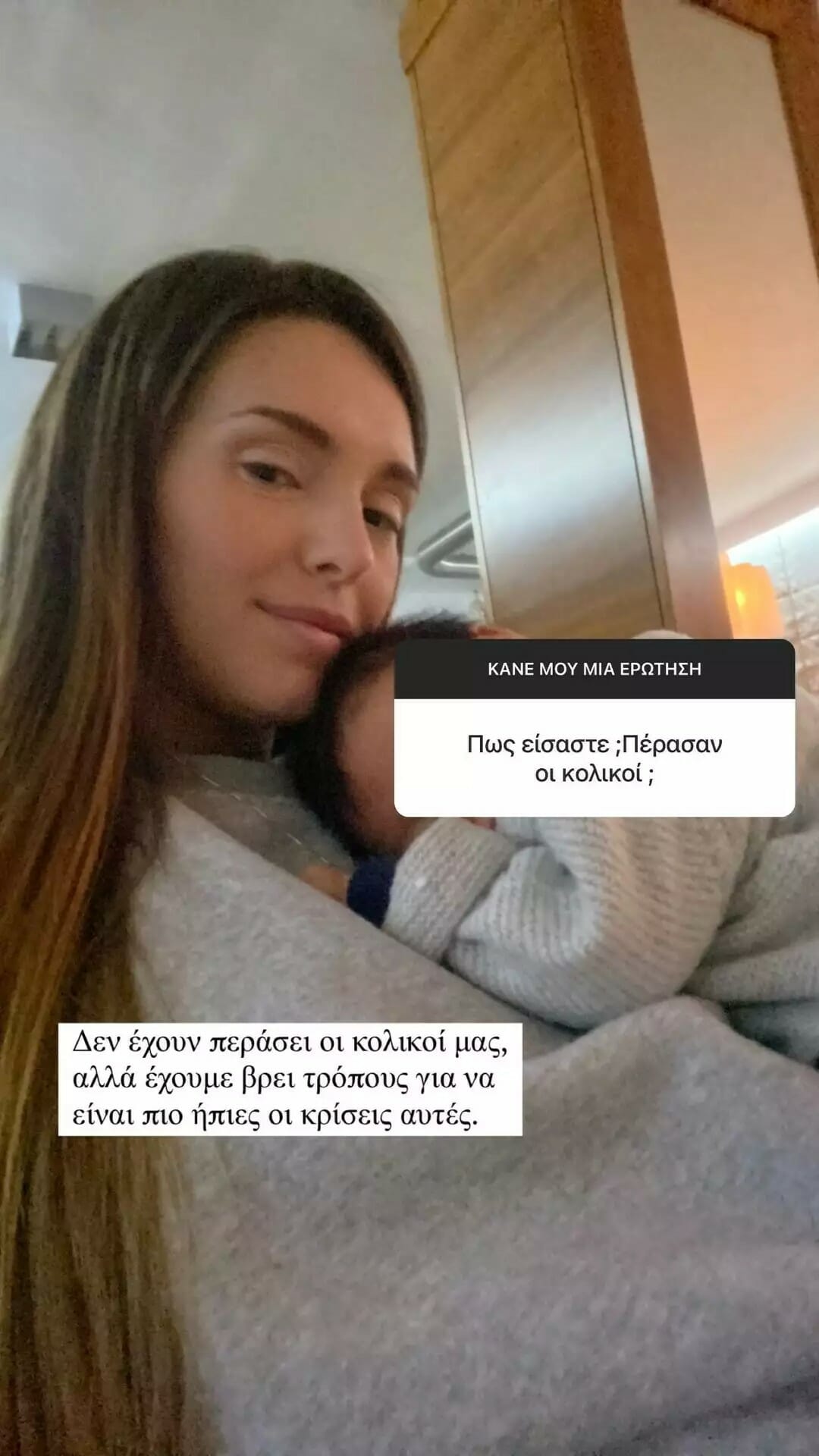 Σε άλλη ανάρτηση, η πρώην παίκτρια του My Style Rocks έκανε λόγο για τους κολοικούς που αντιμετωπίζει ο γιος της -όπως όλα τα μωρά – αλλά και για το γάλα που του δίνει το οποίο όπως λέει είναι αποκλειστικά δικό της.