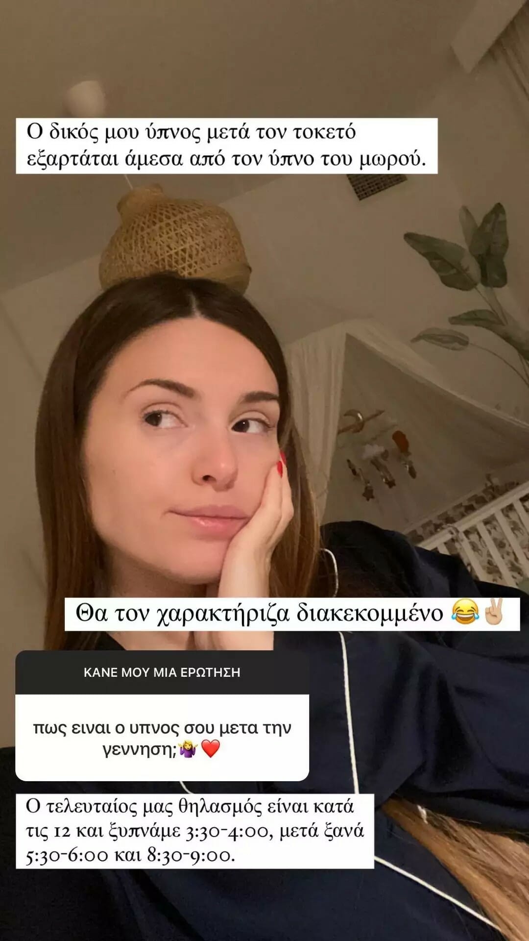 Σε άλλες αναρτήσεις της, η Ιωάννα Σιαμπάνη αποκάλυψε τα πρώτα συμπτώματα που είχε, πριν μάθει ότι είναι έγκυος, αλλά και το πώς είναι ο δικός της ύπνος τώρα που το μωρό της είναι ακόμα τόσο μικρό.