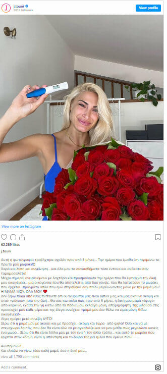 Η influencer Iωάννα Τούνη προχώρησε σε μια μακροσκελή ανάρτηση, στην οποία τονίζει πως είναι τριών μηνών έγκυος. Παράλληλα, κάνει πολλές συγκινητικές αναφορές στη μητέρα της που έφυγε πρόσφατα από τη ζωή.