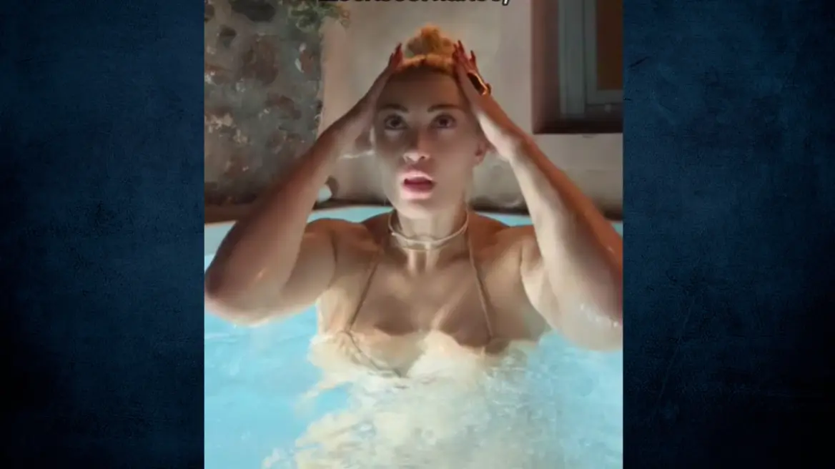 Η instagrammer κατέγραψε τον εαυτό της από την ώρα που έκανε βραδινό μπάνιο σε πισίνα. Χωρίς να πει κάτι, φύσαγε και ξεφύσαγε, πιάνοντας το κεφάλι της. Για το βίντεο, χρησιμοποίησε έναν ήχο με τη φωνή της Ελισάβετ Κωνσταντινίδου ως Ζουμπουλία στη σειρά «Παρά Πέντε» που λέει αγανακτισμένη: «Όχι, όχι, ως εδώ και μη παρέκει. Συγγνώμη δηλαδή και εγώ άνθρωπος είμαι, πόσο να αντέξω. Θα φύγω εγώ στο τέλος να ηρεμήσω».