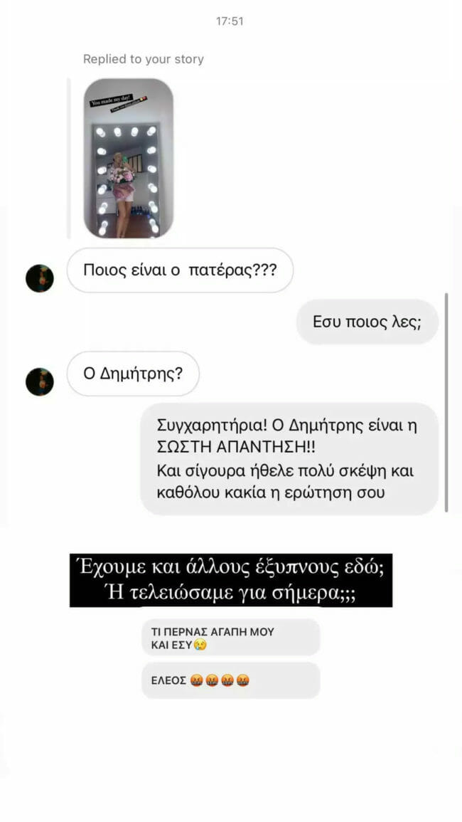 Η ίδια όμως, φαίνεται πως συνεχίζει να δέχεται μηνύματα για το ποιος είναι ο πατέρας του παιδιού της. Αυτή τη φορά δεν δίστασε αν απαντήσει δημόσια σε ένα από τα μηνύματα που έλαβε από διαδικτυακό της φίλο. Για να σταματήσουν να τη σχολιάζουν.