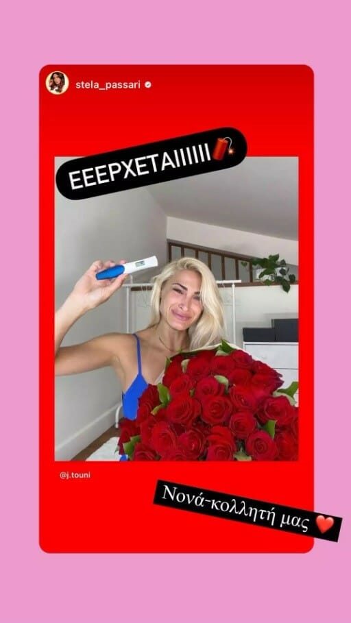 Η Ιωάννα Τούνη κάνοντας repost το μήνυμα της Στέλλας Πάσσαρη έκανε γνωστό πως εκτός από συνεργάτιδες στη δουλειά, θα πάνε τη σχέση τους ένα βήμα παραπάνω. Ανακοίνωσε στους διαδικτυακούς της φίλους ότι η κολλητή της και συνεργάτιδά της θα είναι η νονά του πρώτου παιδιού της!