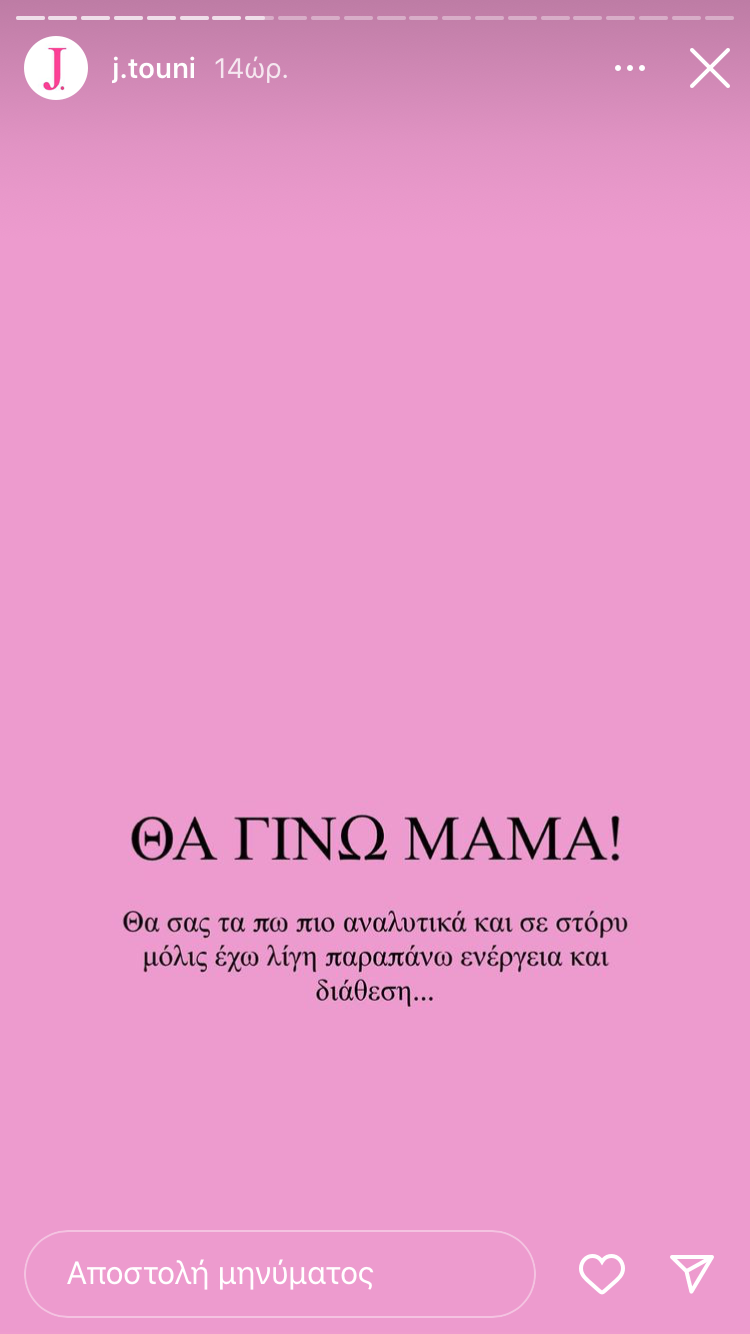 Μόλις χθες ανακοίνωσε η Ιωάννα Τούνη πως είναι έγκυος στον τρίτο μήνα και δεν έχει σταματήσει να δέχεται ευχές στον λογαριασμό της στο Instagram