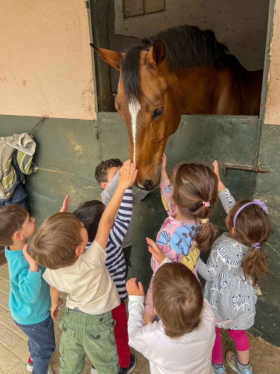 Ιπποκομία: Τα παιδιά γνωρίζουν τα άλογα από κοντά και μαθαίνουν πώς να τα φροντίζουν. Η διαδικασία αυτή καλλιεργεί την υπευθυνότητα, την τρυφερότητα και την κατανόηση για τις ανάγκες ενός ζωντανού οργανισμού. Μέσα από απλές αλλά σημαντικές πράξεις, όπως το βούρτσισμα και το χάιδεμα, τα παιδιά συνδέονται συναισθηματικά με τα άλογα, μαθαίνοντας να σέβονται και να φροντίζουν.