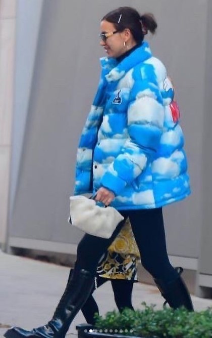 Η Ιρίνα Σάικ μόλις βρήκε το πιο παραδεισένιο μπουφάν για το 2020. Το supermodel εντοπίστηκε στη Νέα Υόρκη με την κόρη της να φοράει ένα puffer jacket σε baby blue χρώμα με τύπωμα συννέφων, από την περιζήτητη συνεργασία Moschino x Palace, η οποία εξαντλήθηκε μέσα σε λίγα 24ωρα.