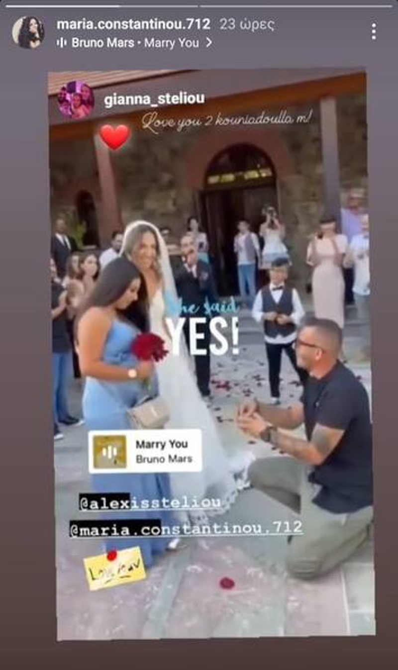 Η ίδια είχε βρεθεί καλεσμένη σε γάμο και κρατώντας την ανθοδέσμη που έπιασε από τη νύφη, εκείνος γονάτισε και της ζήτησε να γίνει και επίσημα η γυναίκα του.