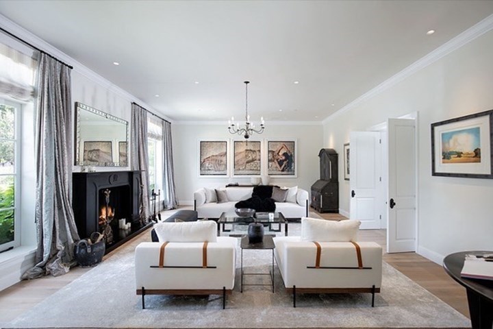 Η εκθαμβωτική έπαυλη διαθέτει 7 κρεβατοκάμαρες, 10 μπάνια, τεράστιο σαλόνι, καθιστικό, βιβλιοθήκη, γυμναστήριο, αίθουσα προβολών και κουζίνα.