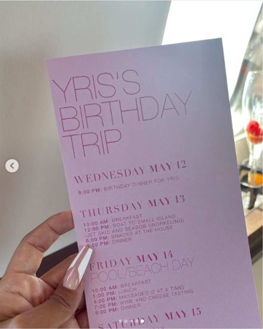 Το πάρτι περιλάμβανε σαμπάνια, πολλά κοκτέιλς, μάφινς, βαρκάδα, αλλά ακόμα και μασάζ.