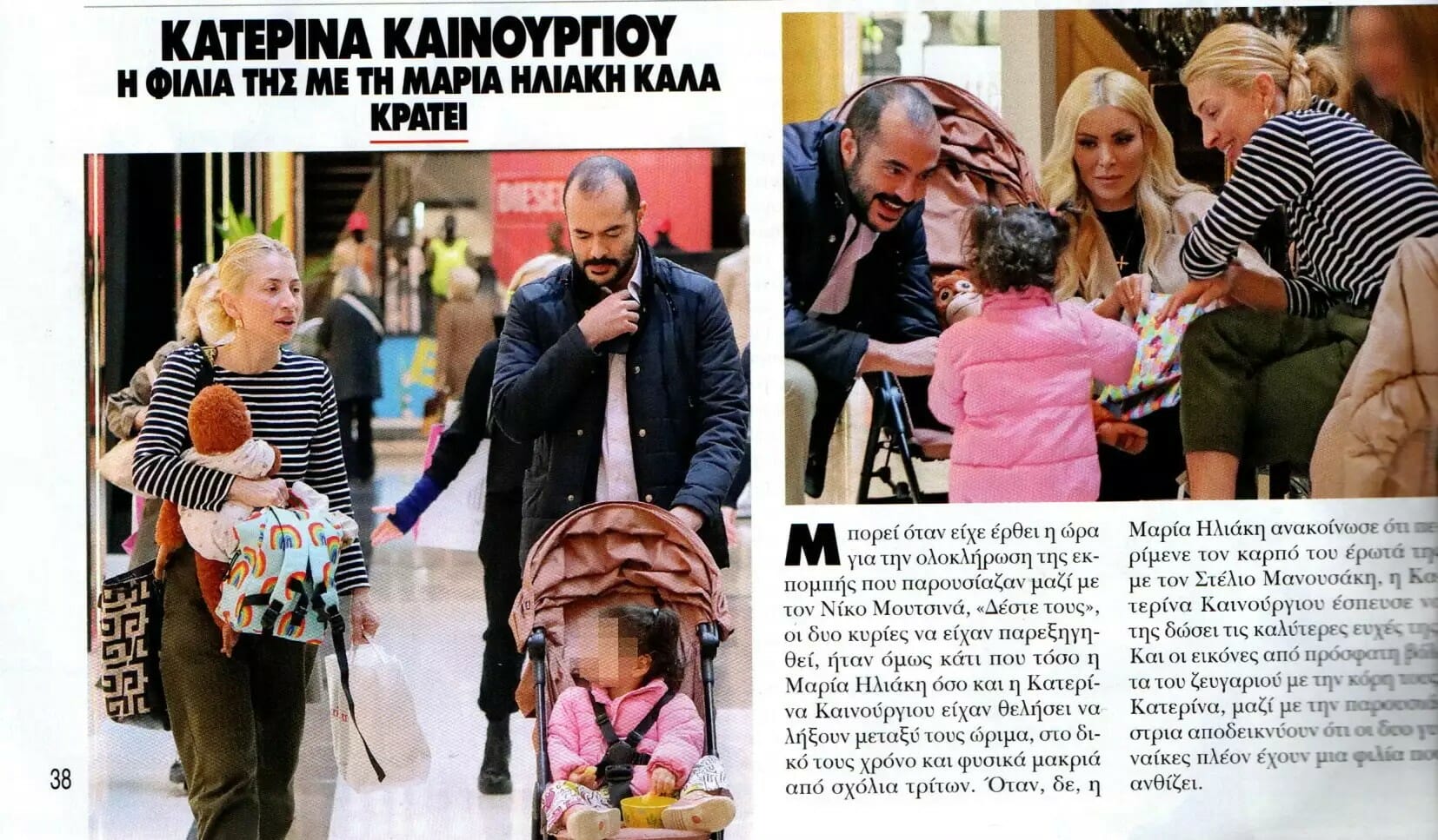 Ο φωτογραφικός φακός του περιοδικού «HELLO» απαθανάτισε την τυχαία συνάντηση της Καινούργιου με την Ηλιάκη και την κόρη της σε γνωστό εμπορικό κέντρο στο Μαρούσι.