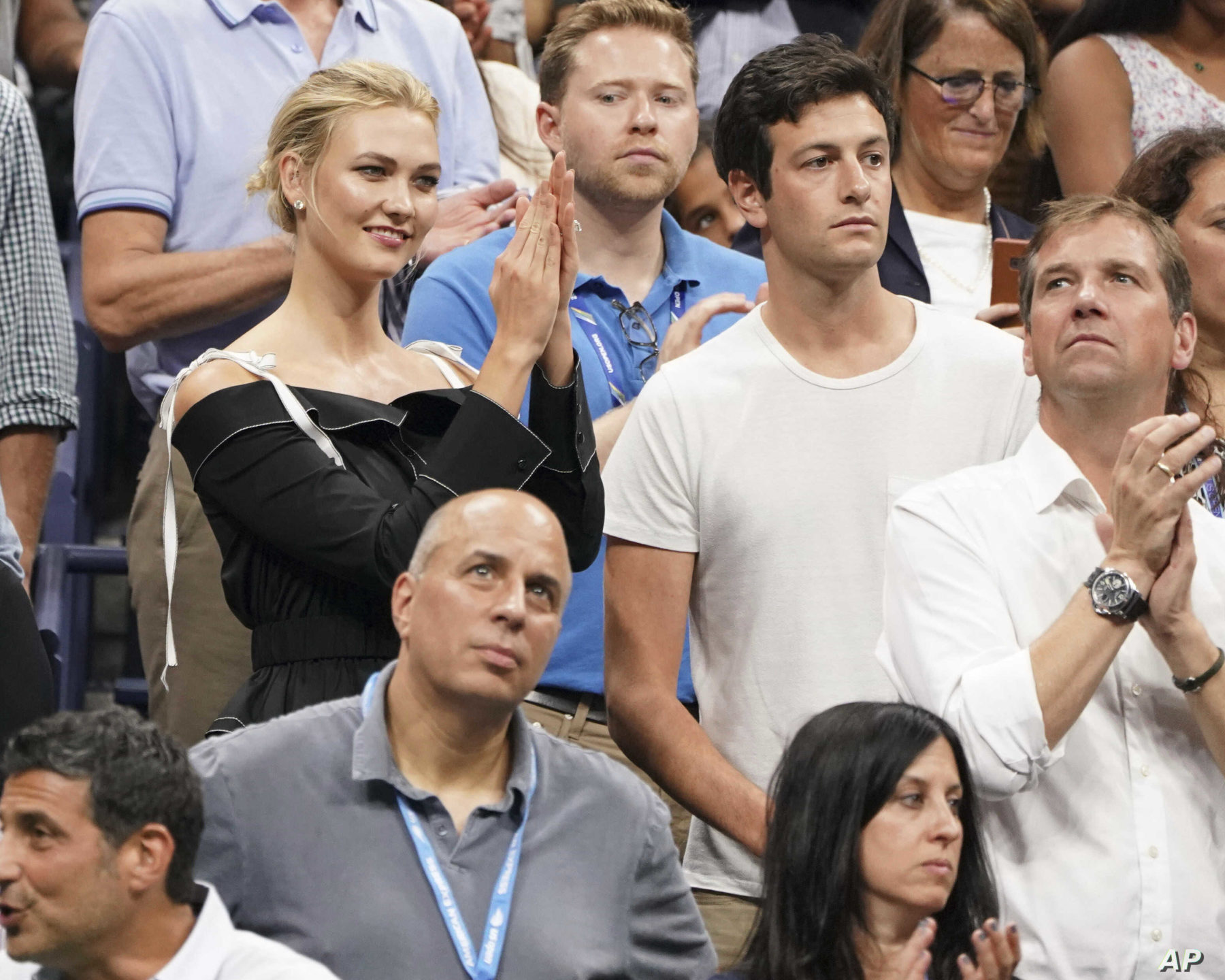 Karlie Kloss, top left, and Joshua Kushner attend the semifinals of the U.S. Open tennis tournament at the USTA Billie Jean King National Tennis Center on Thursday, Sept. 6, 2018, in New York. (Photo by Greg Allen/Invision/AP)