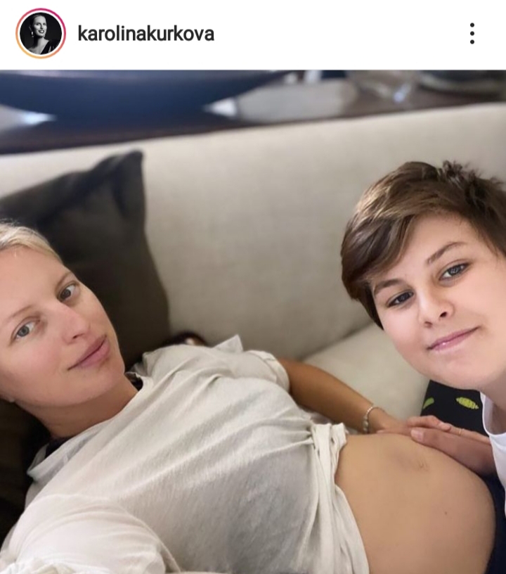 Η ευτυχισμένη μαμά είναι πολύ ενεργή στα social media και χθες ανέβασε μια φωτογραφία δείχνοντας την φουσκωμένη της κοιλίτσα. Μαζί της ήταν και ο μεγάλος της γιος που της χάιδευε την κοιλιά.