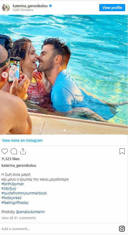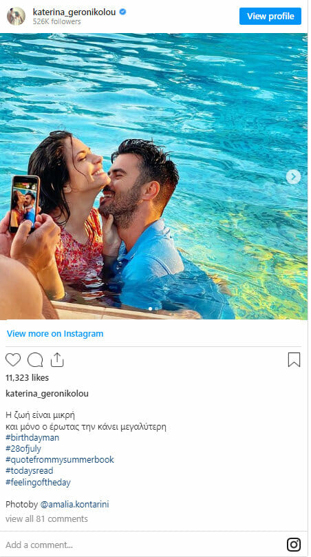 «Η ζωή είναι μικρή και μόνο ο έρωτας την κάνει μεγαλύτερη» έγραψε η Γερονικολού στη λεζάντα της ανάρτησής της.