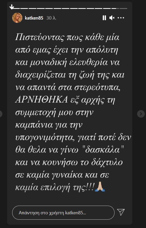 Αρνήθηκα εξαρχής τη συμμετοχή μου στην καμπάνια για την υπογονιμότητα.