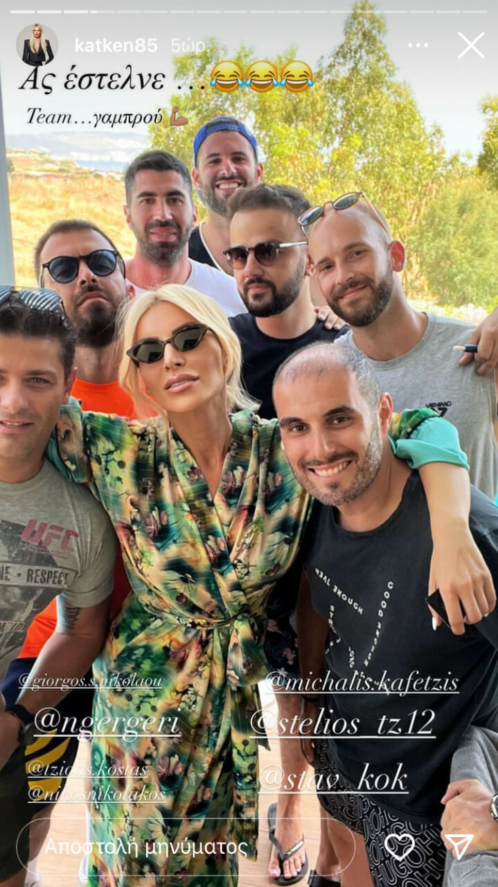 Έγινε η κουμπάρα του ζευγαριού σε μια πολύ όμορφη και χαρούμενη τελετή στην Κεφαλονιά. Από την Πέμπτη έφτασε στο νησί μαζί με φίλους και συνεργάτες για την τελετή και το γαμήλιο πάρτι. Ενώ δεν σταμάτησε να δημοσιεύει φωτογραφίες και βίντεο με λεπτομέρειες από το bachlorette της κουμπάρας της. Αλλά και φωτογραφίες από τον γάμο και το φανταστικό γαμήλιο πάρτι που οργανώθηκε στην παραλία.