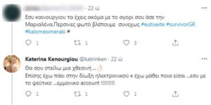 «Επίσης έχω πάει στην δίωξη ηλεκτρονικού κ έχω μάθει ποια είσαι …εσυ με το ψεύτικο …εμμονικο account!!»