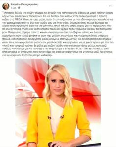 Τον δικό της απολογισμό για την φετινή τηλεοπτική σεζόν έκανε η παρουσιάστρια του κεντρικού δελτίου ειδήσεων του mega Κατερίνα Παναγοπούλου