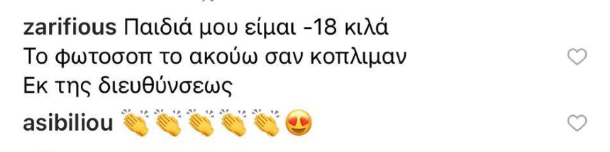 Οι διαδικτυακοί φίλοι της παρατήρησαν την ανανεωμένη εικόνα της και όταν άρχισαν ερωτήσεις σχετικά με το photoshop, η Κατερίνα Ζαρίφη ξεκαθάρισε ότι αυτό είναι πλέον το σώμα της.