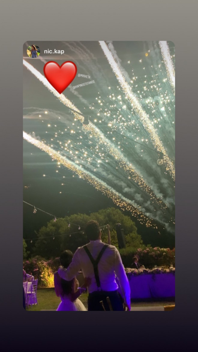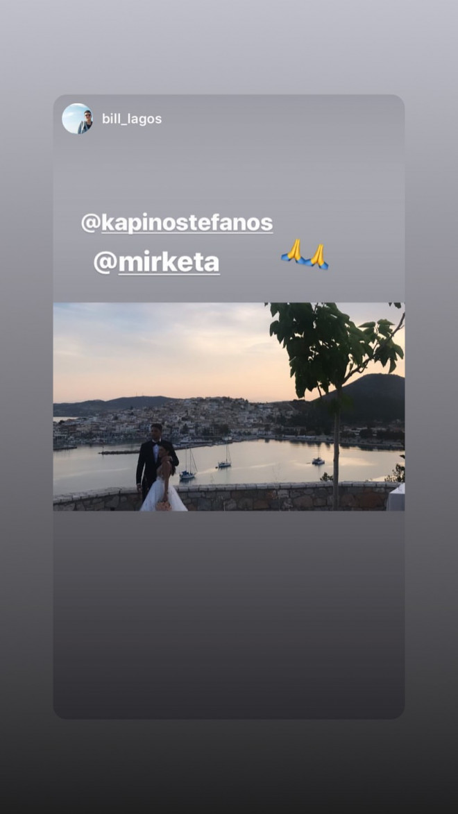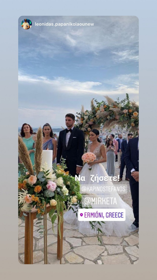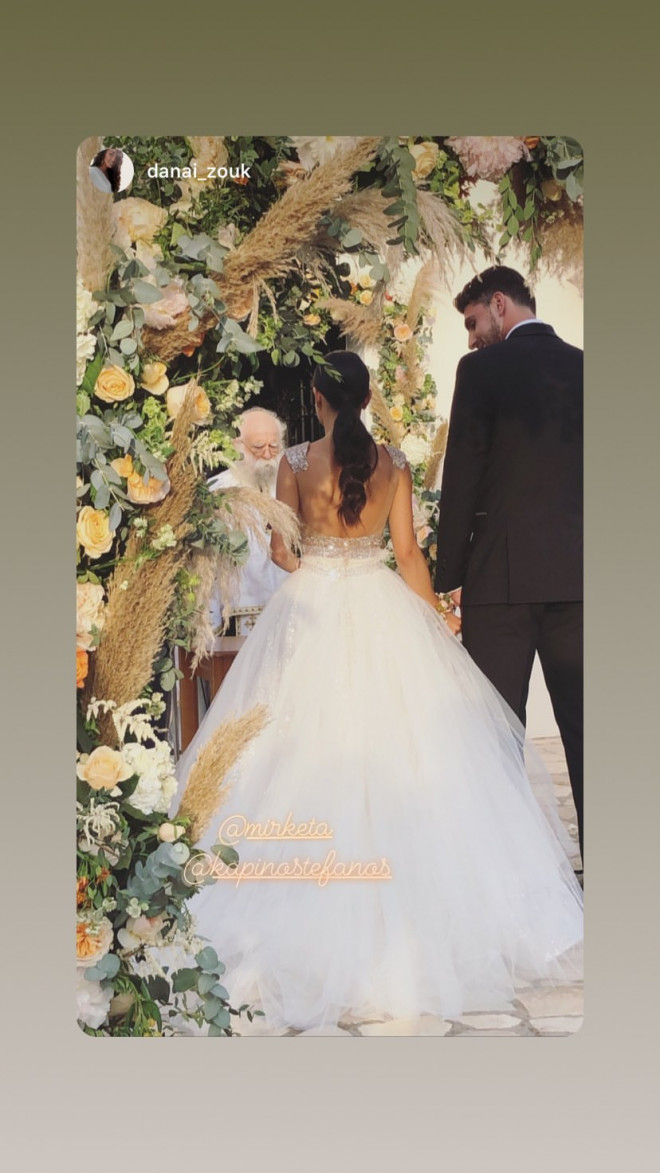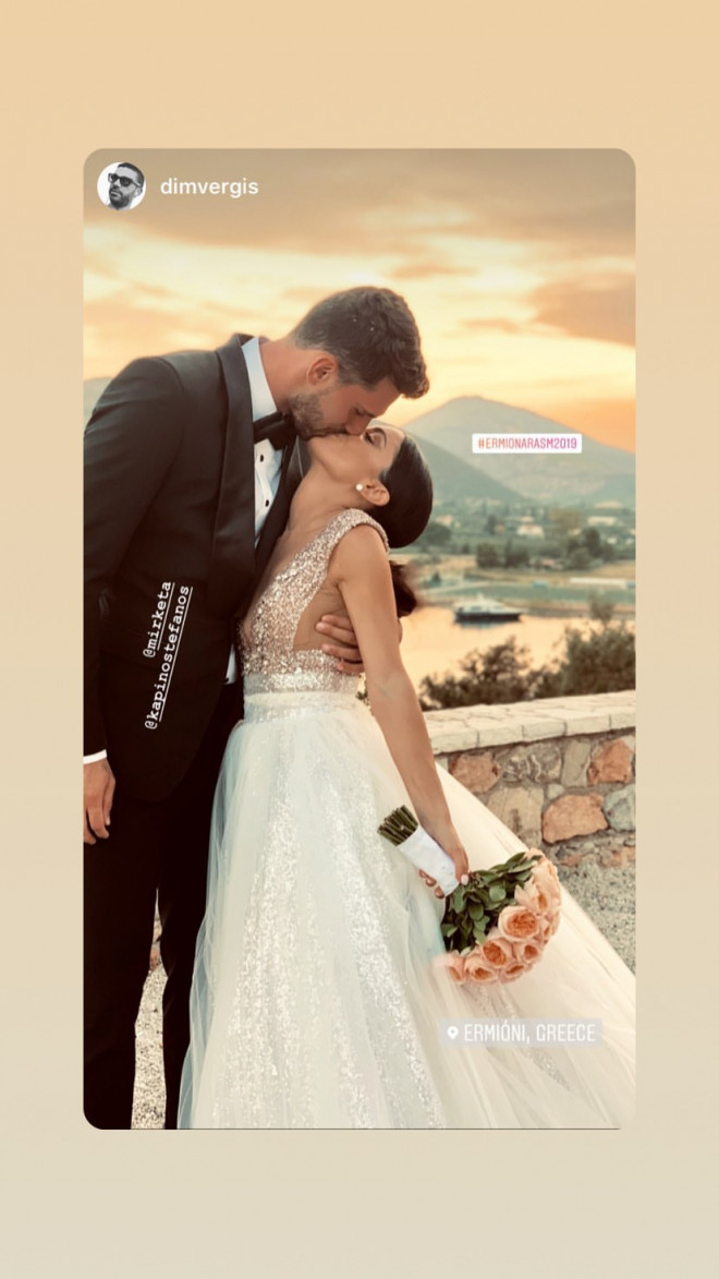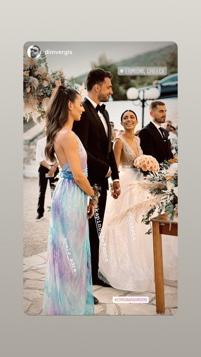 Το μυστήριο έγινε στον Ιερό Ναό Αγίου Γερασίμου στην Ερμιόνη Αργολίδας, με κουμπάρους τον ποδοσφαιριστή Χάρη Μαυρία και μία φίλη της νύφης. Η οποία νύφη, να τονίσουμε, είχε επιλέξει νυφικό Maria Konidi, έκανε χορογραφία με τις φίλες της, και εντυπωσίασε τον γαμπρό και τους καλεσμένους στο γαμήλιο πάρτι που ακολούθησε. Λικνιζόταν στο τραγούδι «Βασίλισσα» της Ελένης Φουρέιρα και καταχειροκροτήθηκε. Να ζήσετε και βίον ανθόσπαρτον!